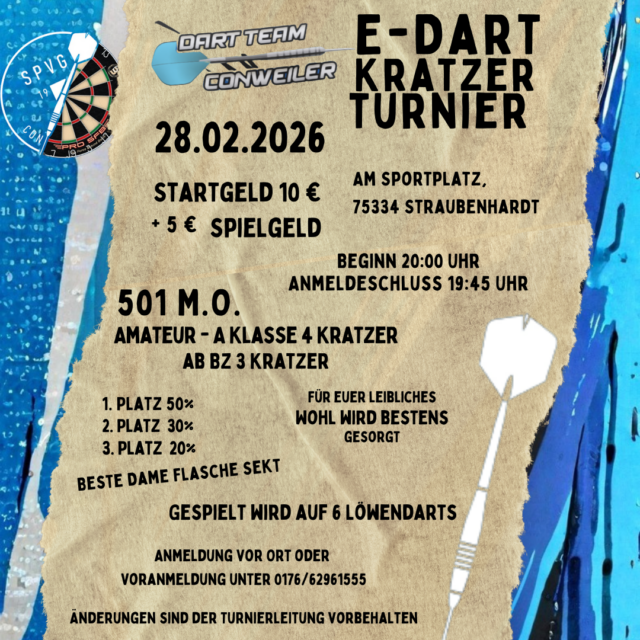 Am 28.02. um 20 Uhr startet im Vereinsheim der Coschwa erneut das legendäre Darts Turnier, Doch dieses Mal in einem ganz anderen Modus als bisher.